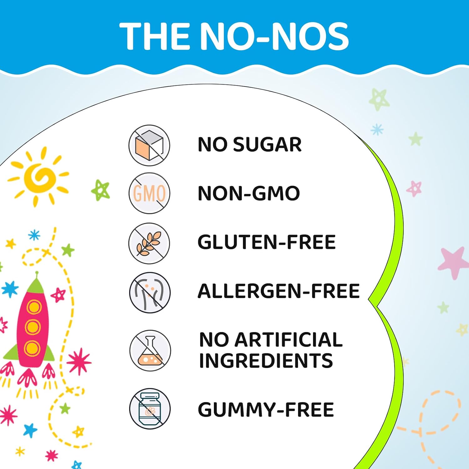Enhanced Gut Support*: Our kids’ vitamins blend includes a Prebiotic Blend sourced from milk and banana extract, along with vital micronutrients like zinc & magnesium, crucial for bone growth and repair. Together, they promote digestive well-being, aid* enzymatic processes, and uphold gut integrity, ensuring optimal nutrient absorption and vitality.