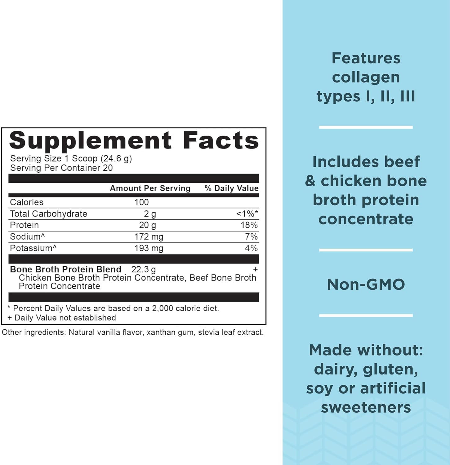 Ancient Nutrition Grass Fed & Cage Free Bone Broth Protein Powder, 20g Protein Per Serving, Hydrolyzed Collagen Peptides, Glucosamine, Chondroitin, Supports Joint & Gut Health, Vanilla, 20 Servings