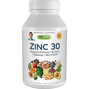 ANDREW LESSMAN Zinc 30-360 Capsules – Highly absorbable Zinc Citrate. Supports Immune, Skeletal, Digestive and Skin Health. Small Easy to Swallow Capsules. No Additives