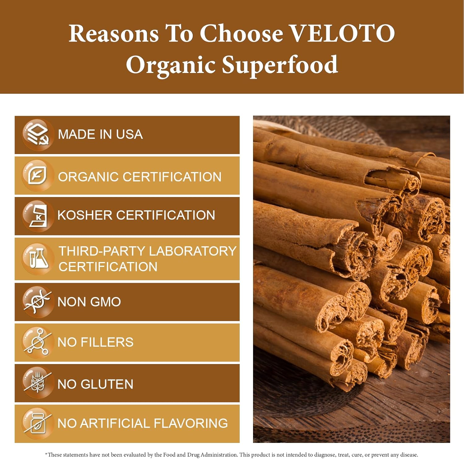 THREE TYPES HEALTH PROTECTION: Every stage of VELOTO Ceylon cinnamon powder organic production takes place in the USA. Our production facility meets GMP standards. VELOTO Ceylon cinnamon powder is Kosher, Non-GMO and Organic Certified. Gluten-free, No Additives