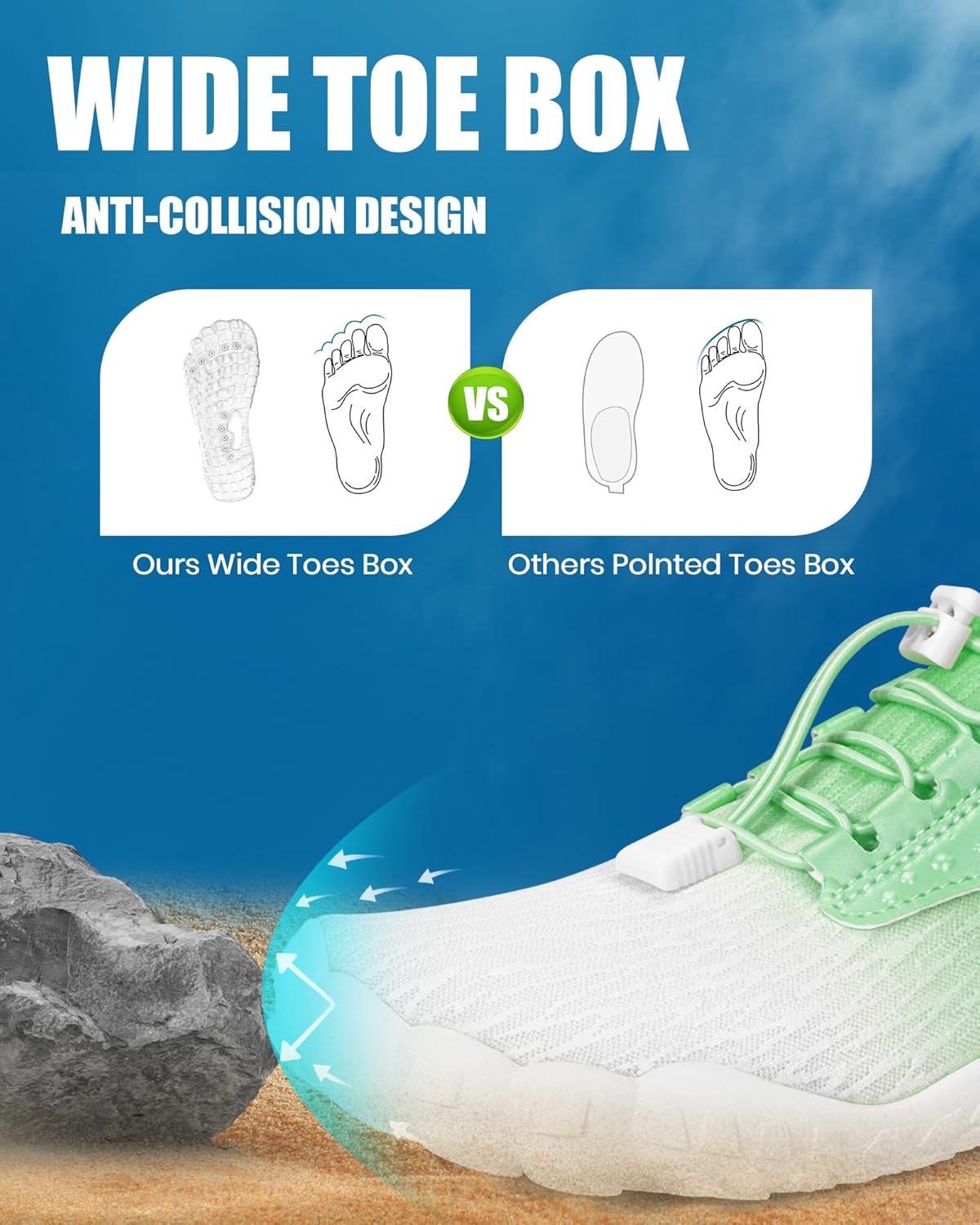 Foot ProtectionBreathable FabricDurable SoleEasy to put on and take offPerfect DrainageGreat for barefoot hiking & water aerobics