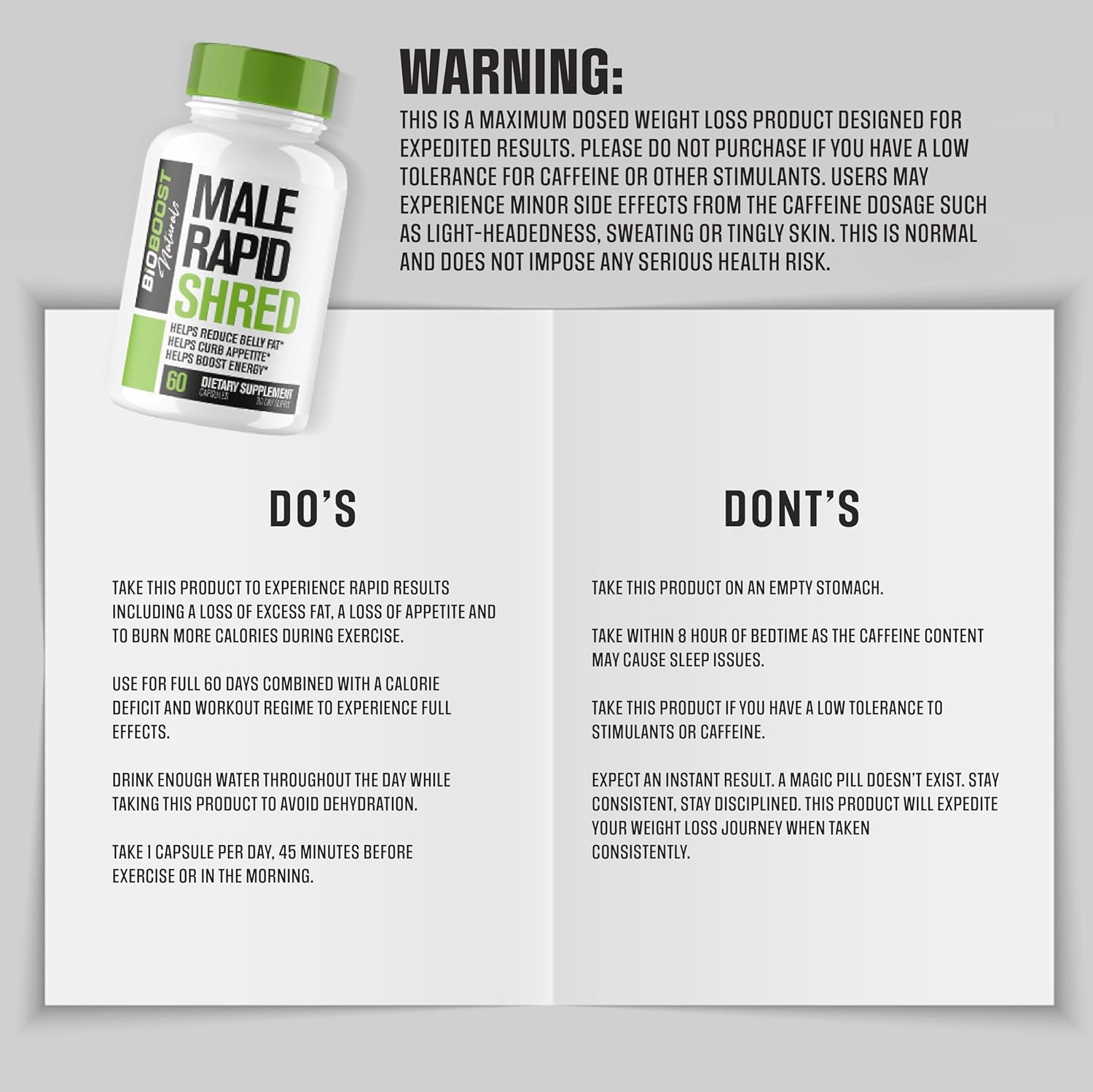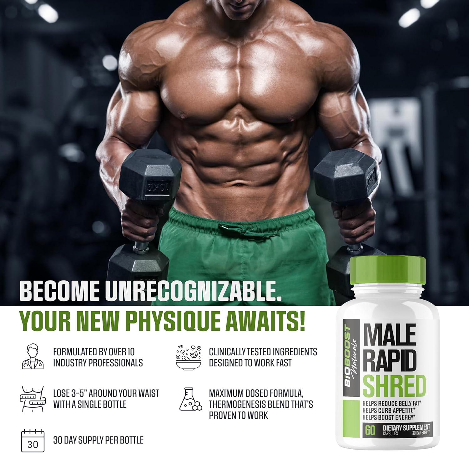 ⚡ Boost Energy and Mental Focus Without Crashes: Tired of mid-day slumps or fatigue during workouts? Male Rapid Shred provides a clean, sustained energy boost with ingredients like caffeine and L-theanine. This combination ensures you stay energized and focused throughout the day without experiencing the jitters or crashes typical of many fat burners.