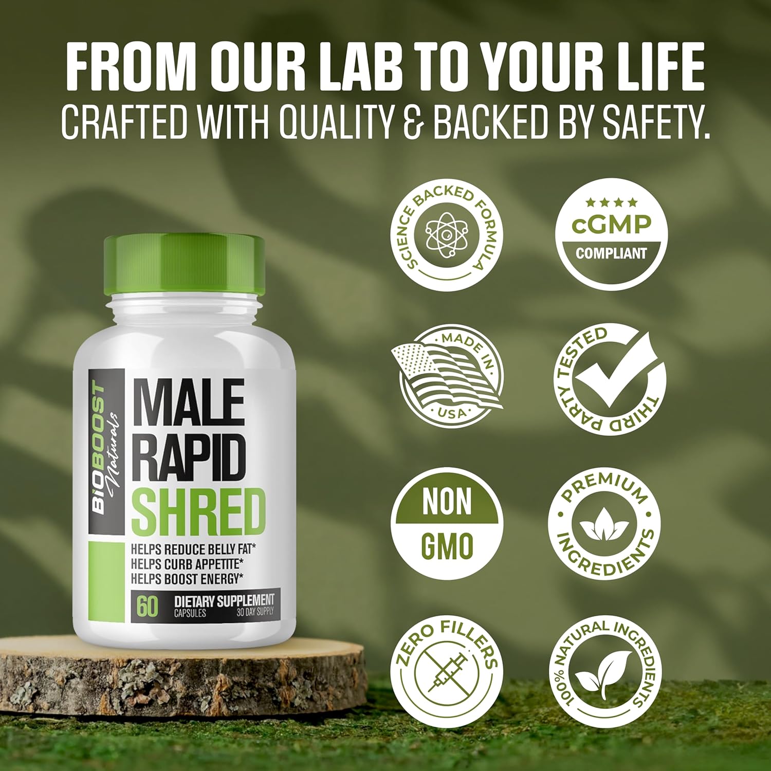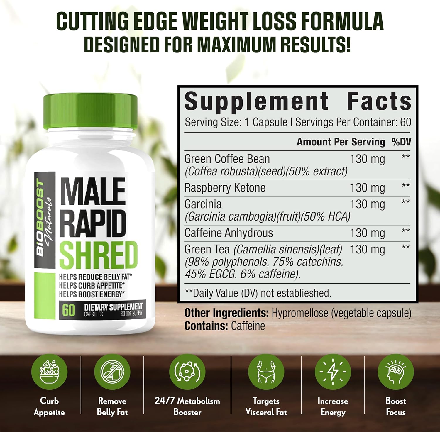 🏋️ Enhance Workouts and Athletic Performance: Male Rapid Shred isn’t just for fat loss—it’s also designed to amplify your physical performance. Ingredients like Green Coffee bean and Raspberry Ketone’s work to increase endurance, stamina, and strength during workouts, giving you the power to push harder, recover faster, and achieve your fitness goals.