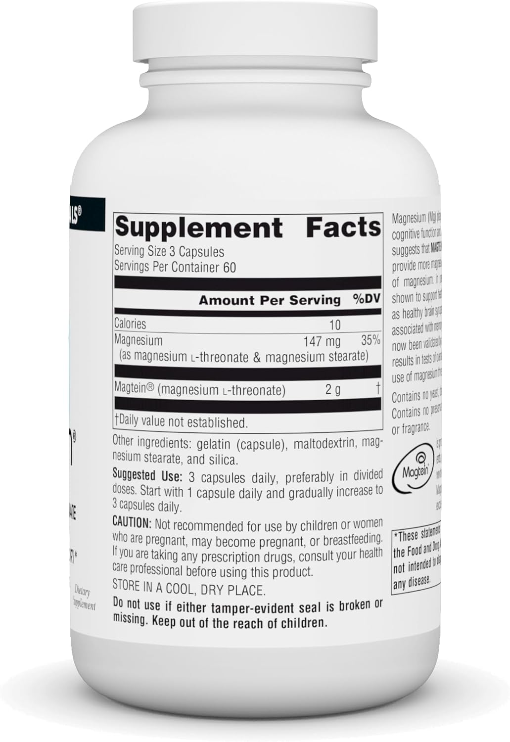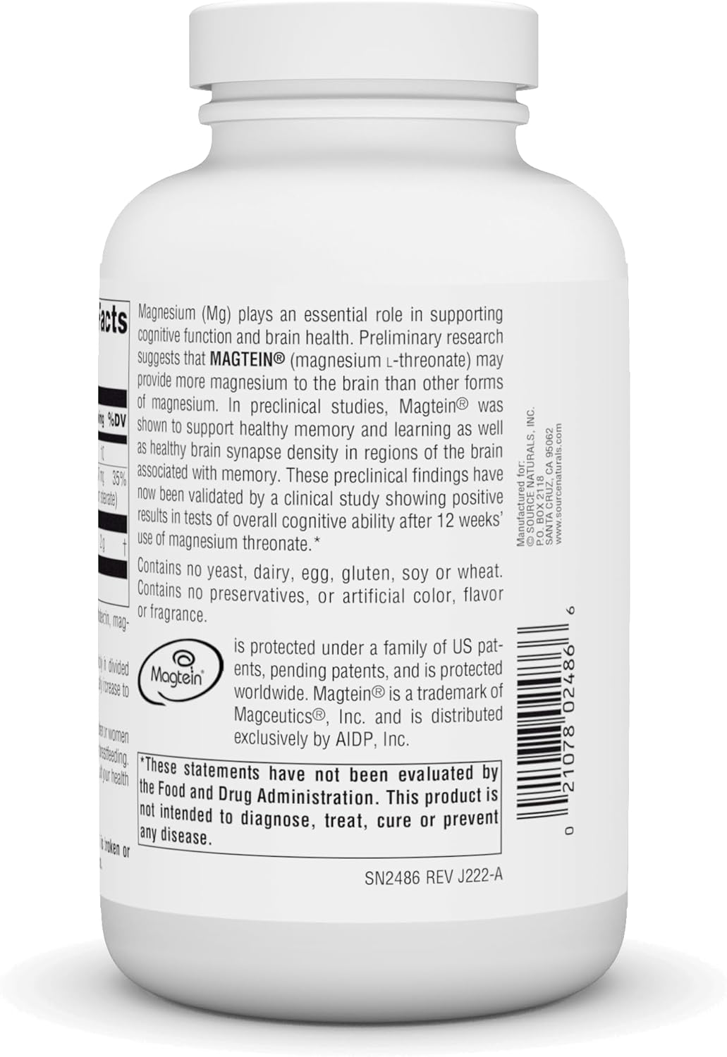 Source Naturals Magtein Magnesium L-Threonate, 667mg, Supports Focus, Mood, Healthy Memory, Cognitive Function – 180 Capsules